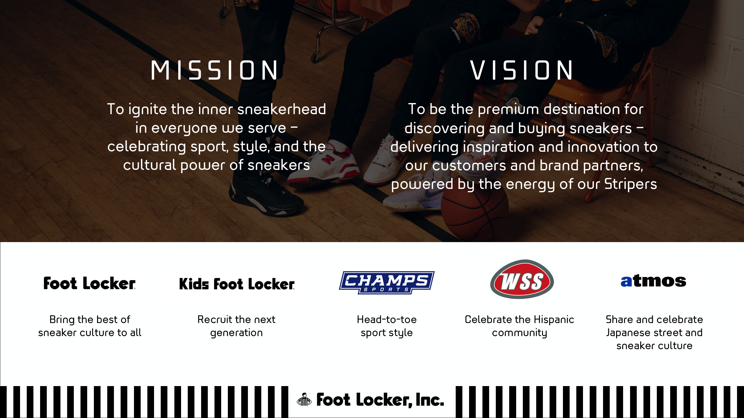 Foot Locker, Inc. is a leading footwear and apparel retailer that unlocks the "inner sneakerhead" in all of us. With approximately 2,400 retail stores in 20 countries across North America, Europe, Asia, Australia, and New Zealand, and a licensed store presence in Europe, the Middle East and Asia, Foot Locker, Inc. has a strong history of sneaker authority that sparks discovery and ignites the power of sneaker culture through its portfolio of brands, including Foot Locker, Kids Foot Locker, Champs Sports, WSS, and atmos.